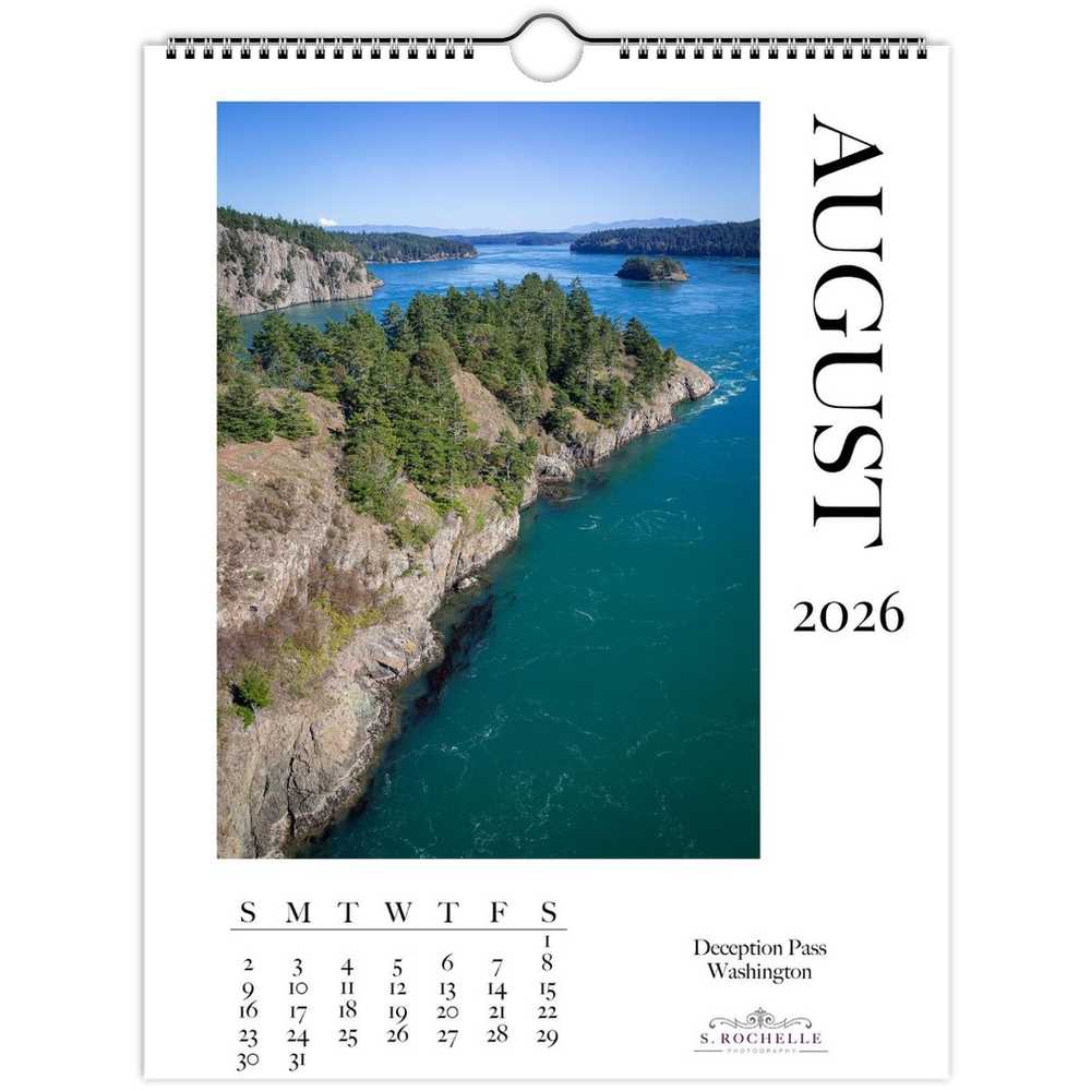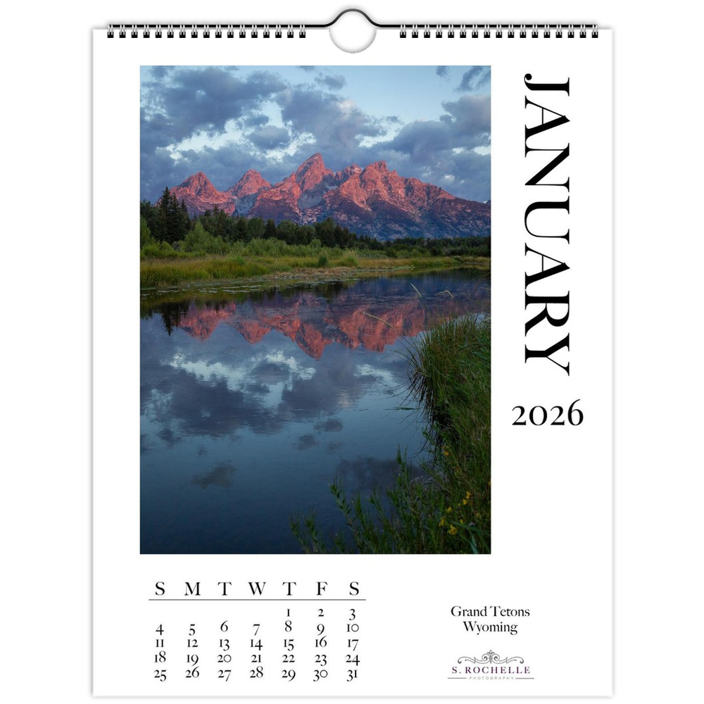 Featuring twelve vibrant, full-color landscape photographs by S. Rochelle Photography, this collection invites you to step into some of the planet’s most awe-inspiring vistas. Each image is rich with depth and atmosphere: golden light washing over tide-pools, emerald cliffs rising above turquoise waters, snow-draped summits glowing at sunset, and deserts sculpted by wind into elegant, sweeping lines. Month after month, the calendar offers a portal to scenes that stir the soul and awaken curiosity.
